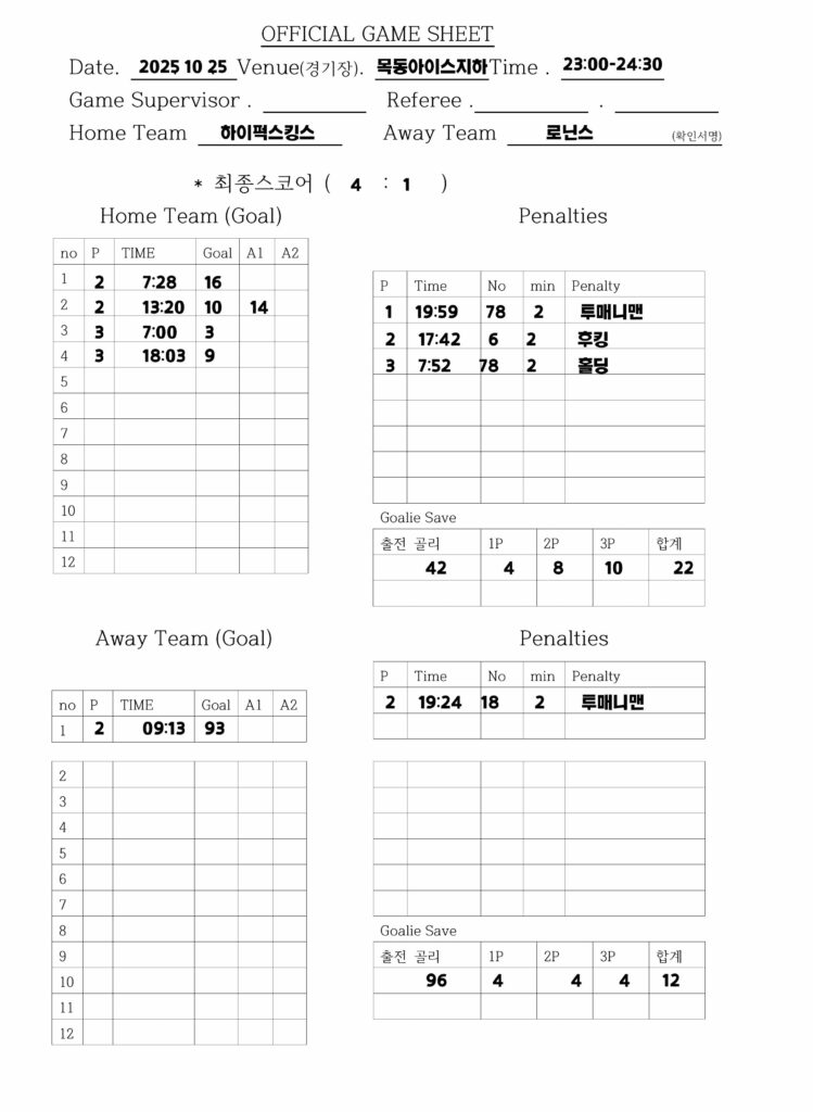 하이퍽스 킹스 vs 로닌스