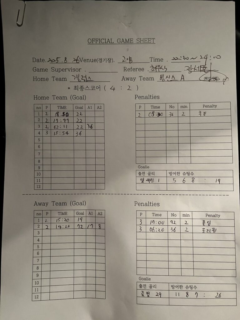 | 2025년 08월 26일 | 22:30 | DIV 2 | 2025 정규시즌 |