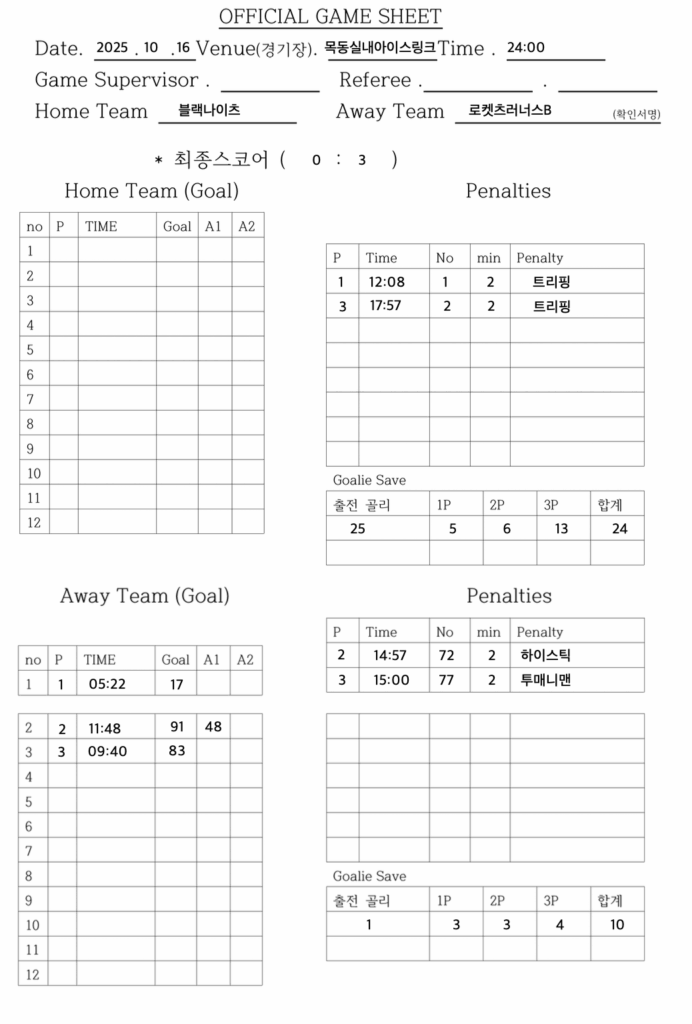 제니스링크장 로켓츠 러너스 B vs 블랙나이츠 |