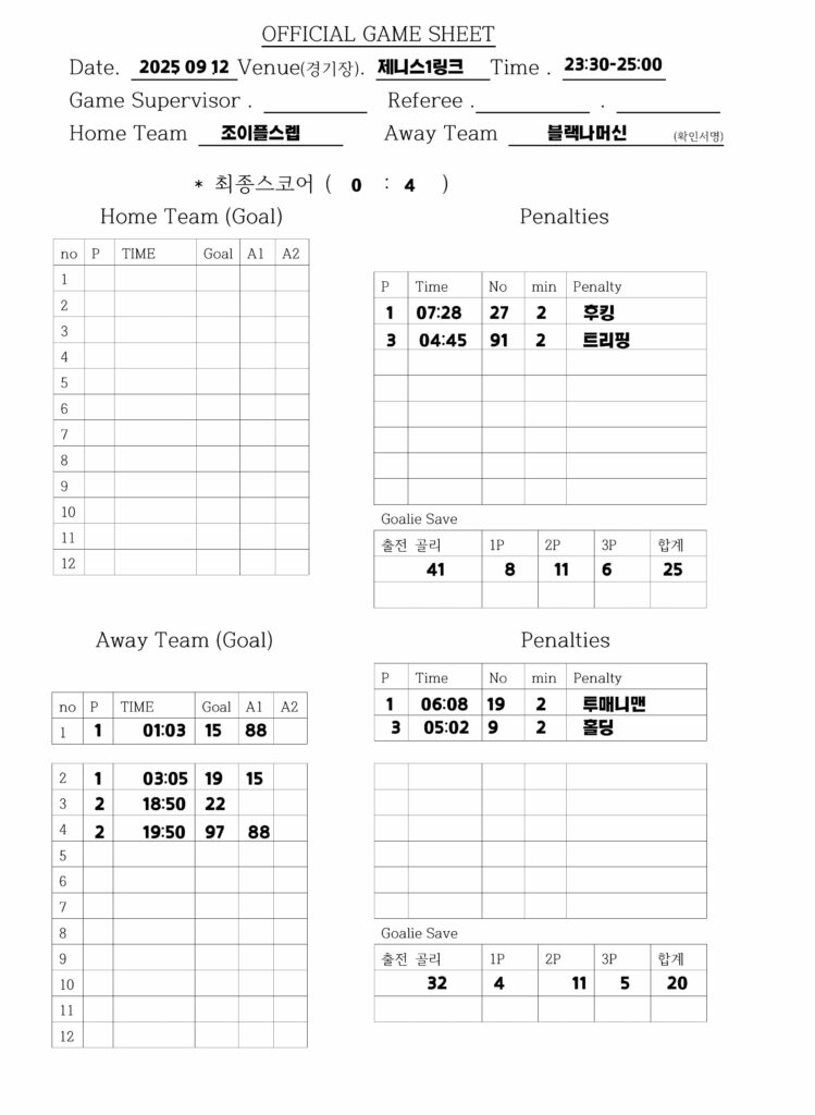 김포아이스링크 블랙머신 vs 조이플스 렙 |