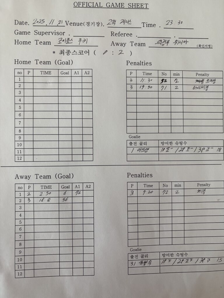 의정부실내빙상장 의정부 위니아 vs 조이플스 루키 |