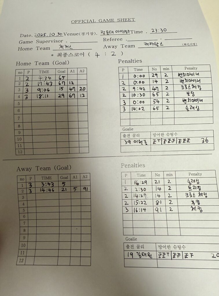 광운대아이스링크 체커스 vs 캐피탈스 |