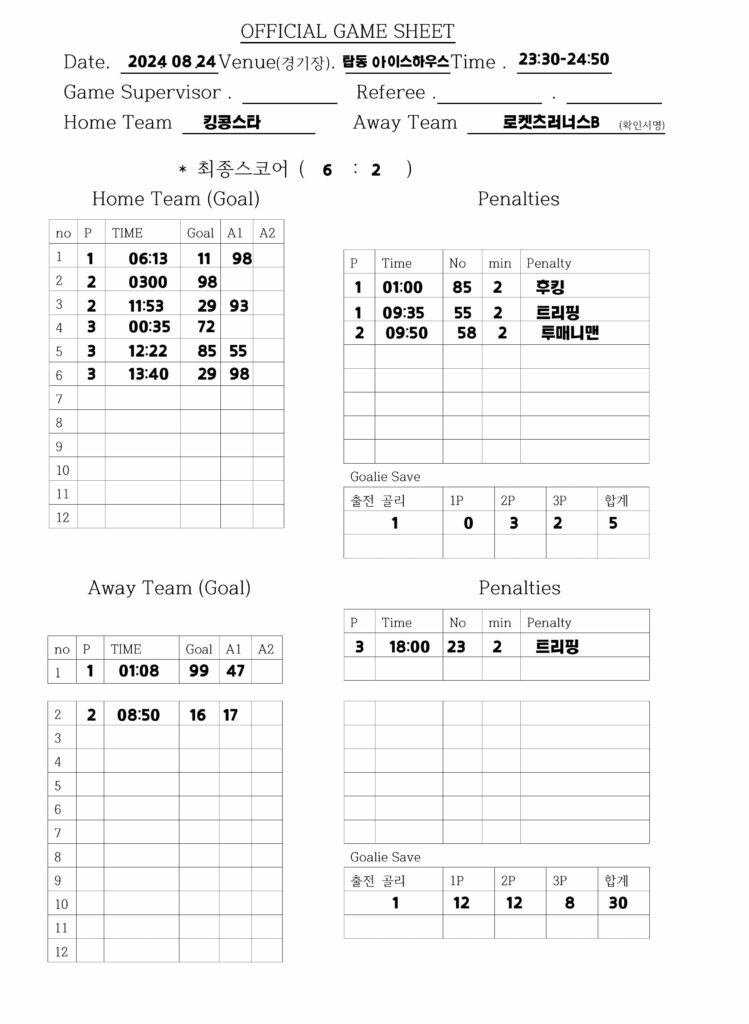 제니스링크장 로켓츠 러너스 B vs 킹콩스타 |