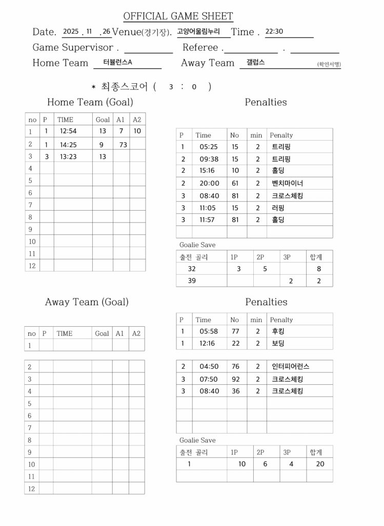 김포아이스링크 갤럽스 vs 터뷸런스 A |