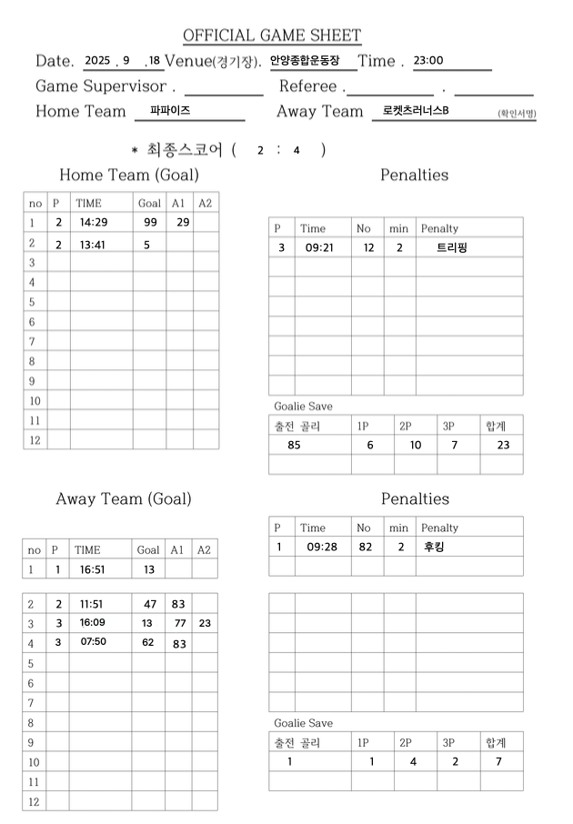 | 2025년 09월 18일 | 23:00 | DIV 8 | 2025 정규시즌 |