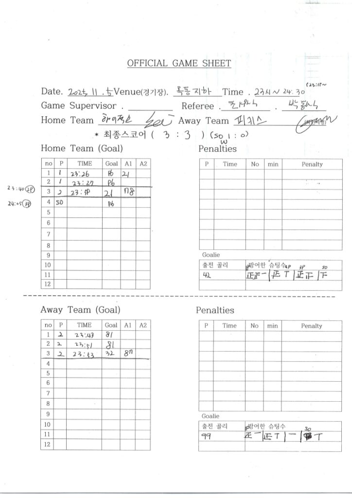 수원 아이스하우스 피키스 vs 하이퍽스 블랙 |